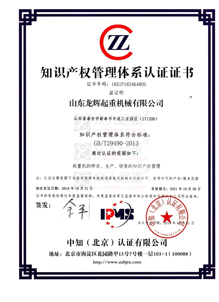 知識產權管理體系認證證書