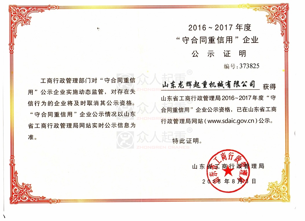 省級守合同重信用企業(yè)公示證明